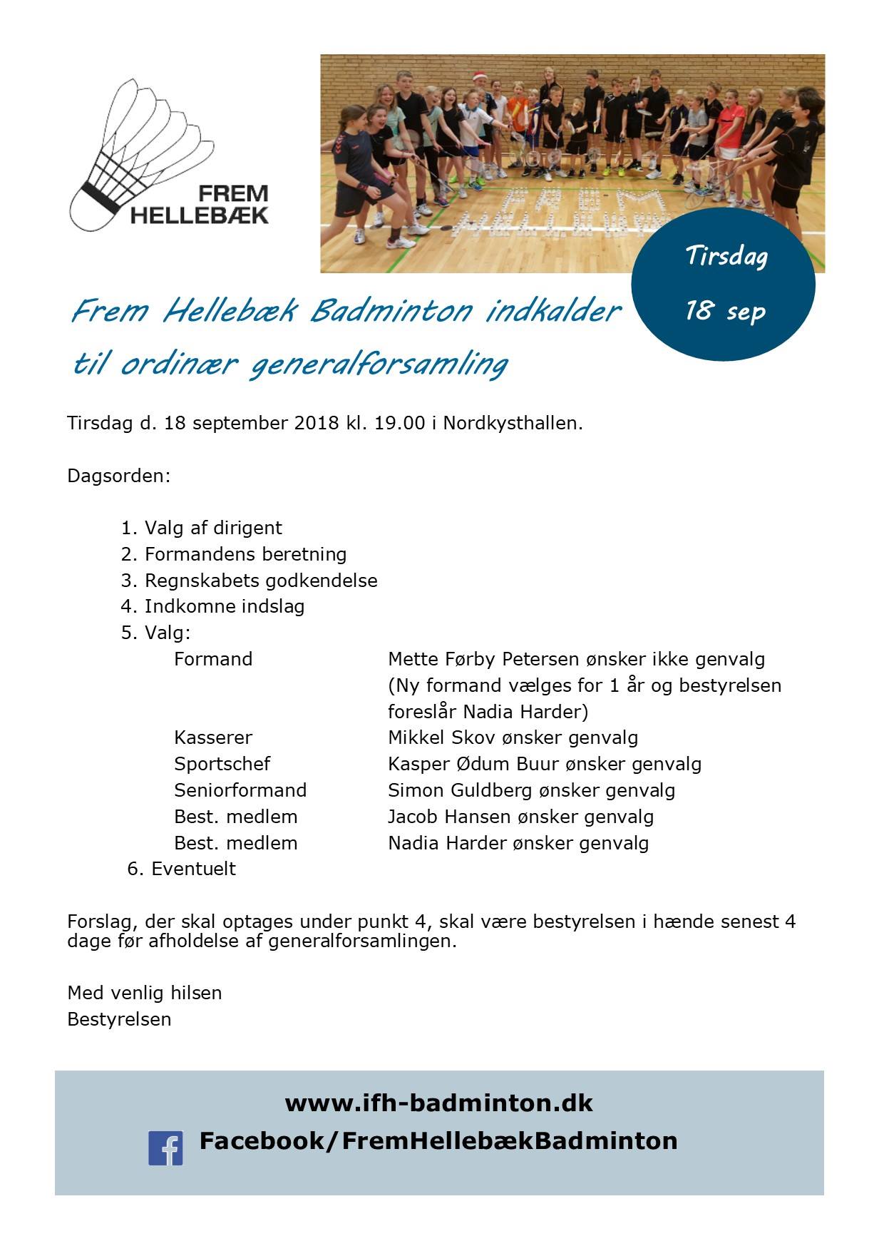 Indkaldelse til generalforsamling tirsdag d.18 september kl. 19.00